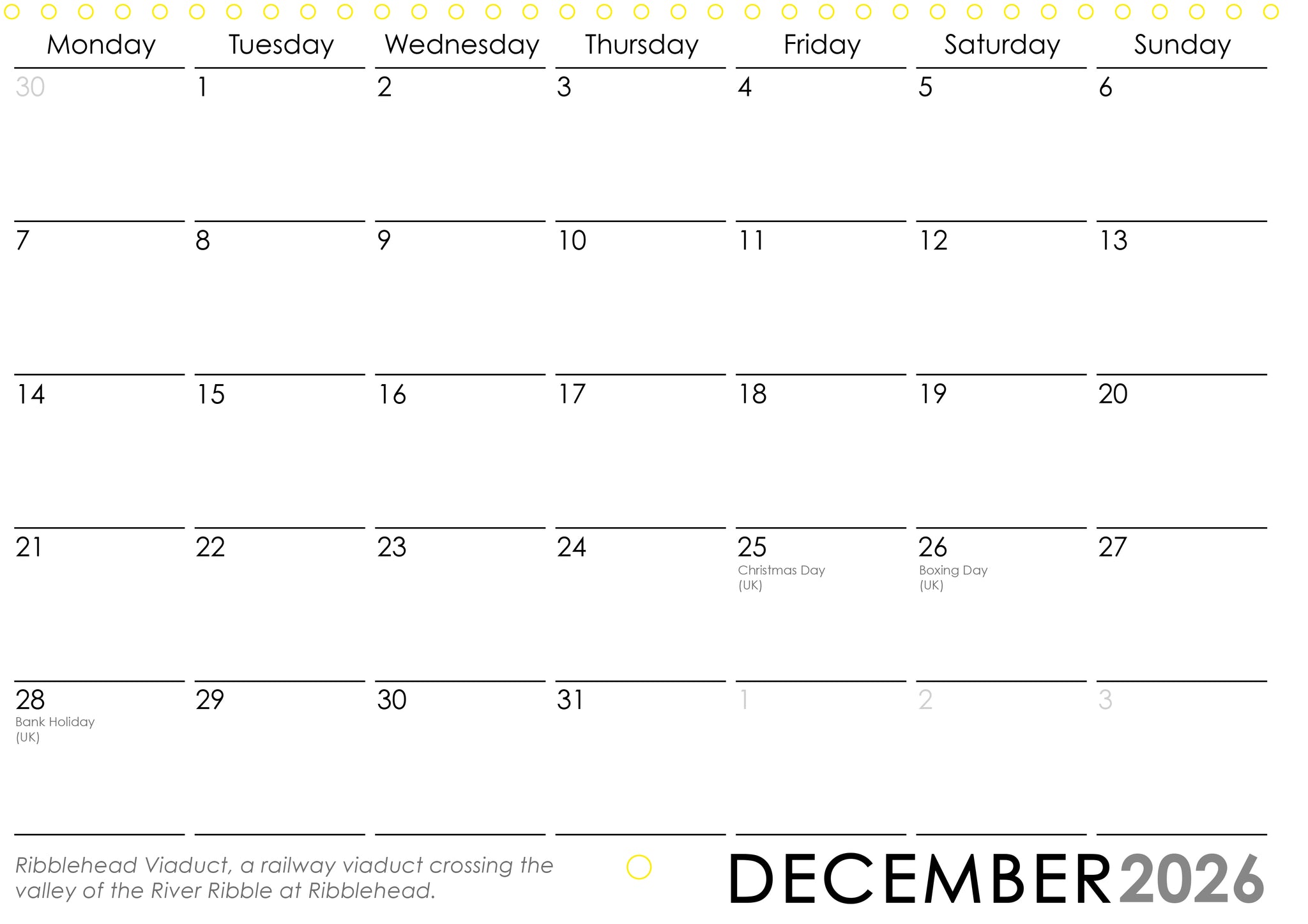The calendar is professional printed, bound and wrapped in a cello bag making this an ideal present for anyone who knows and loves the Yorkshire Dales, North Yorkshire Coast and North York Moors area. It is also a practical calendar with plenty of space to mark important dates on the A4 calendar page for each month.