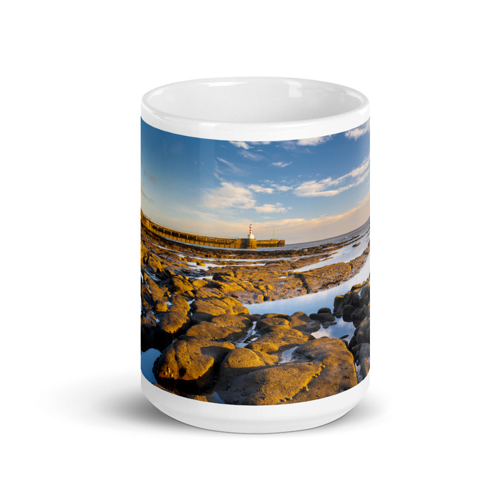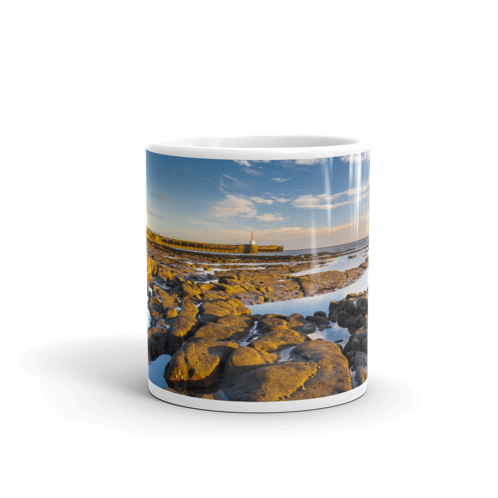 Whether you're drinking your morning coffee, evening tea, or something in between – this Amble Pier, Northumberland, mug's for you! It's sturdy and glossy with a vivid print that'll withstand the microwave and dishwasher.